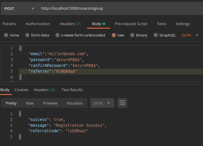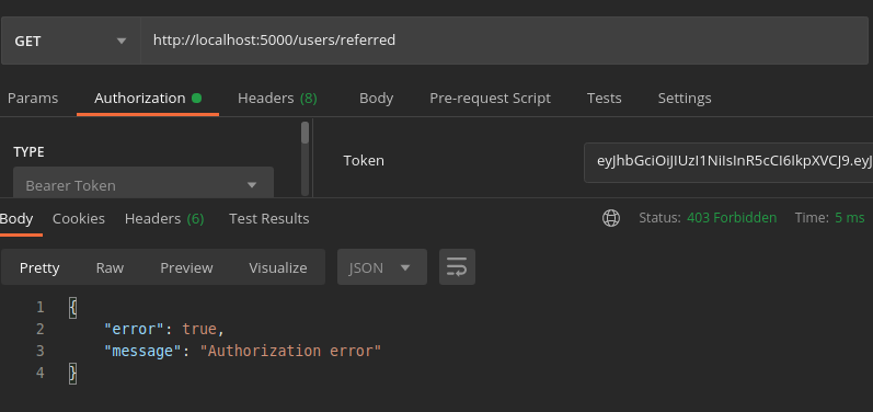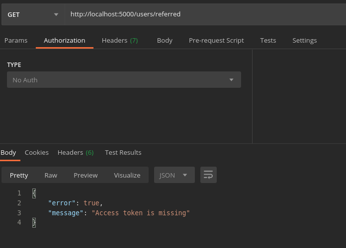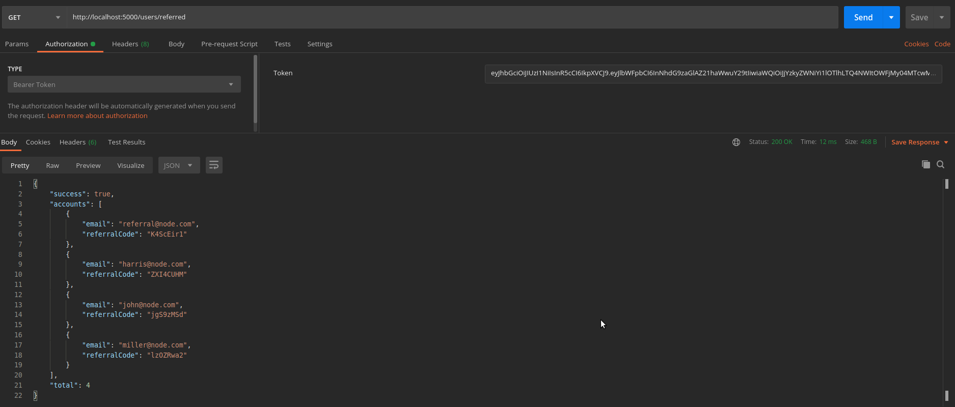 Boom! We got all the accounts who have registered using our referral code. Hence using the JSON Web Tokens we can secure as many endpoints as we need as we did for the GET /referred endpoint.
