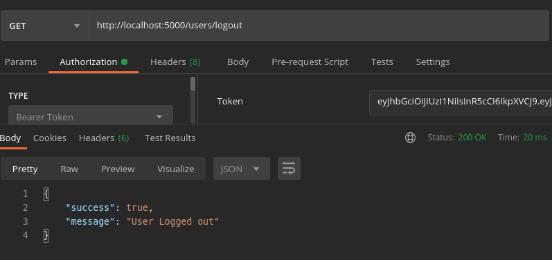 Great! It works as expected. If you check the user’s collection, the access token would have been cleared from the user document. Hence, we have successfully (and securely) integrated JWT into our authentication system.