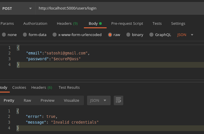 message: "Invalid credentials",