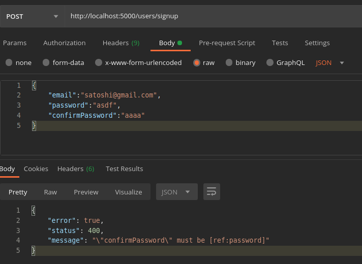 Also we need to validate the incoming request, ie., we need to check whether the email has been entered, whether it is a valid email id, all the required fields are present, the minimum length of the password, etc. Though these things can be done at the client-side, it is not bad to add an extra layer of security to our application by adding a server-side validation.